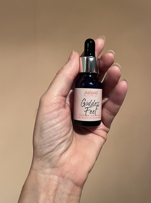 Goddess Feet is droge olie: trekt snel in en voelt niet vet aan.