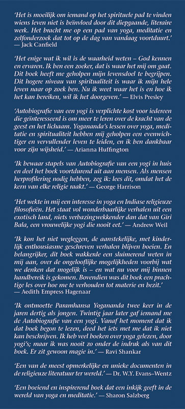 Paramhansa Yogananda was de eerste yogameester uit India die als opdracht had in het Westen te gaan wonen en lesgeven. In dit boek deelt hij zijn wonderbaarlijke levensverhaal. Hij beschrijft levendig en gedetailleerd de vele jaren van spirituele training onder zijn meester Sri Yukteswar – en daarmee onthult hij een fascinerend en weinig bekend aspect van de Indiase cultuur. De subtiele maar duidelijke wetten waarmee yogi’s wonderen verrichten en volledige zelfbeheersing bereiken, worden helder en op meeslepende wijze uitgelegd. Met al zijn diepgang, inspiratie en wijsheid, zit het ook vol zachte humor, levendige verhalen en praktisch gezond verstand.