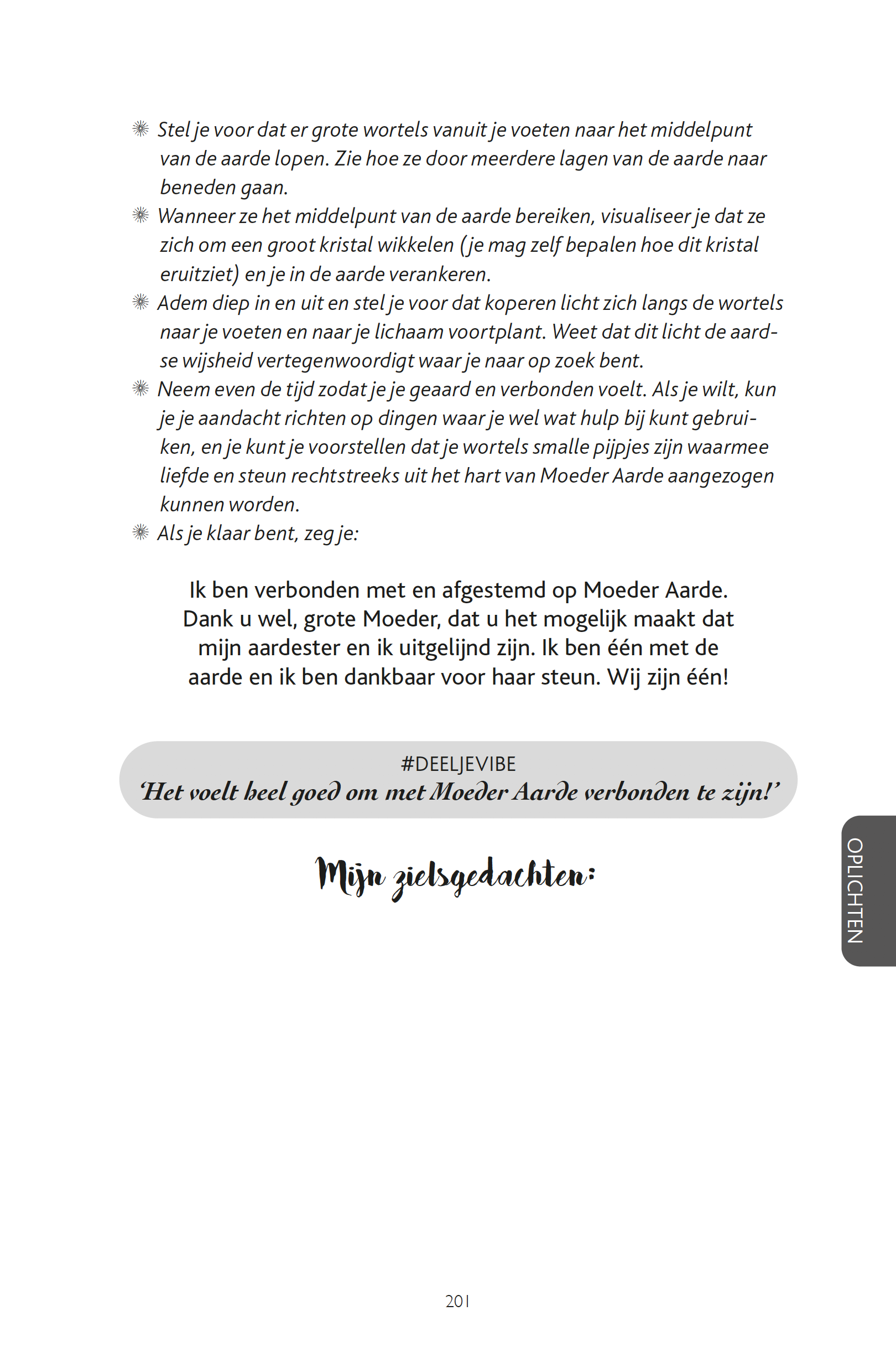 Toen ik dit boek kreeg, was ik direct enthousiast. Elke dag bij het ontbijt las ik een Vibe en schreef de tekst die bij #Deeljevibe staat op een klein briefje en deed dat in mijn achterzak. Als ik dan naar de wc ging door de dag heen, herlas ik dat tekstje en stond ik er even bij stil. Ik heb 111 dagen achter elkaar het boek gelezen en vanaf de 1e dag merkte ik dat mijn vibratie duidelijk hoger was de hele dag. Er stonden veel reminders in het boek waar ik opnieuw mee aan de slag ging en het boek heeft me mooie nieuwe inzichten gegeven. Een mooie tekst die ik las in het boek over De IK BEN-heid om regelmatig te zeggen na een diepe inademing en langzame uitademing is: Ik ben het licht, Jij bent het licht, Wij zijn het licht. Nu heb ik het boek helaas uit en lees ik dagelijks de Lichtwerkersverklaring waarin alles wat in het boek staat, samen komt en waar mijn vibratie ook direct door verhoogt. Ik ben dankbaar dat ik dit boek heb gekregen van mijn lieve vriendinnen.