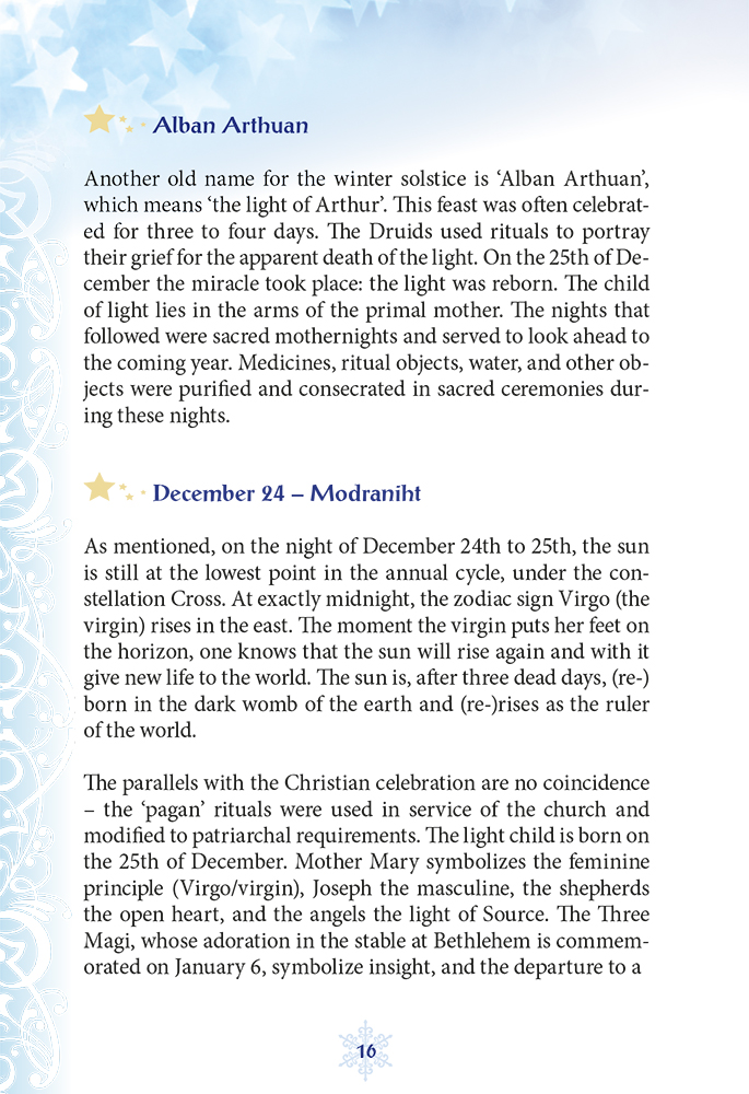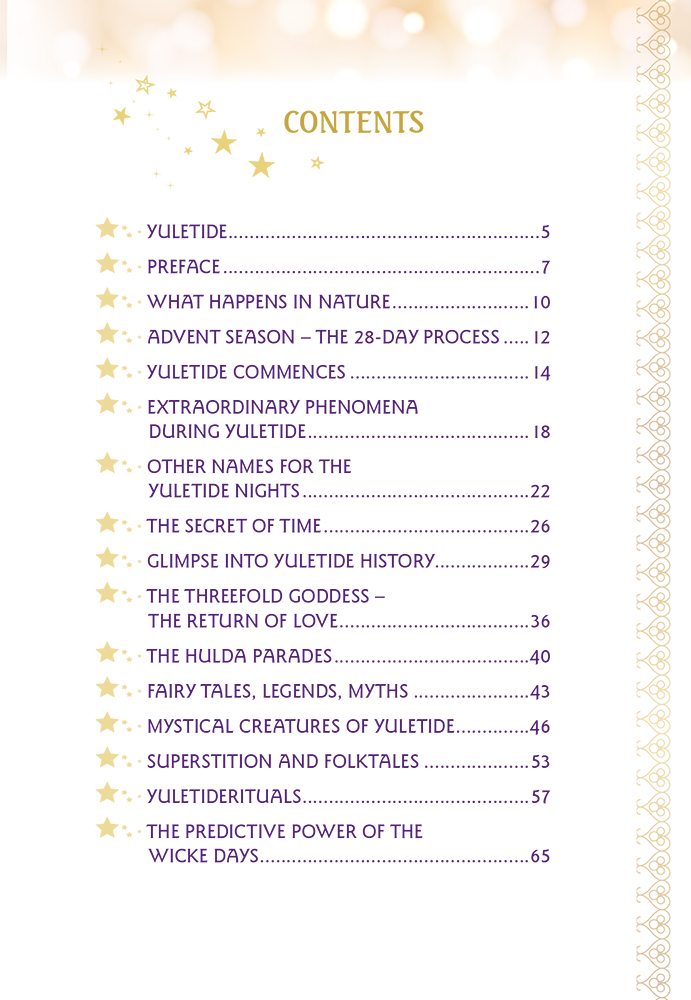 • 112 pages with enthralling, old knowledge, rituals and exercises for the Yule nights, and explanation on how to use the predictive quality of the Wicke days
