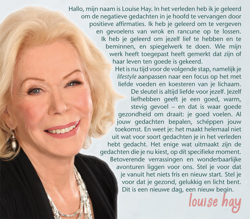 Deze downloadbare geleide meditaties zijn geschreven door Louise Hay, Ahlea Khadro en Heather Dane om jou te ondersteunen in het helen van je gezondheid, je fitheid, en je lichaam. Ze helpen je om je manier van leven te veranderen naar een manier die zich richt op het koesteren van je lichaam, je lijf met liefde te behandelen en het gezond te voeden.
