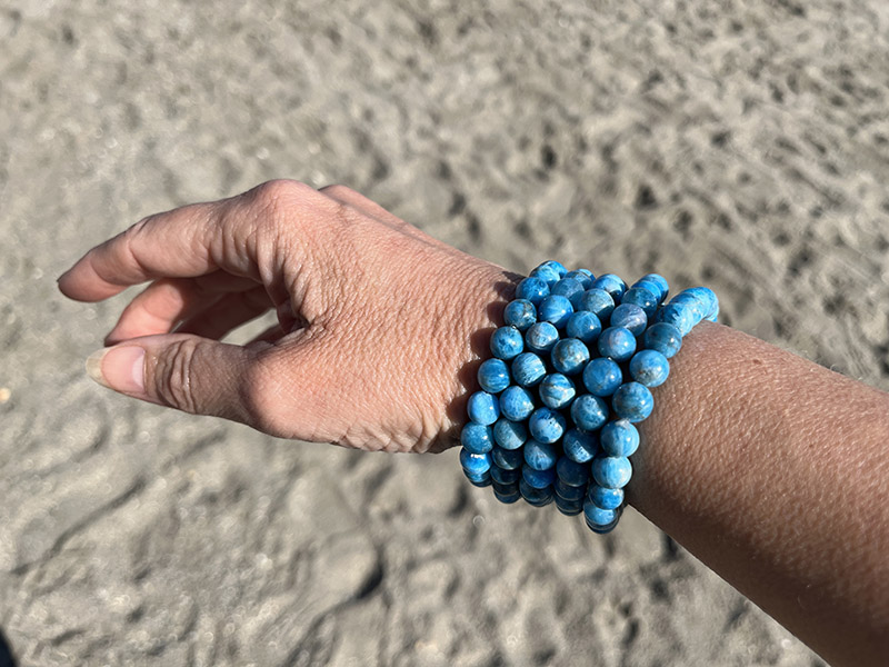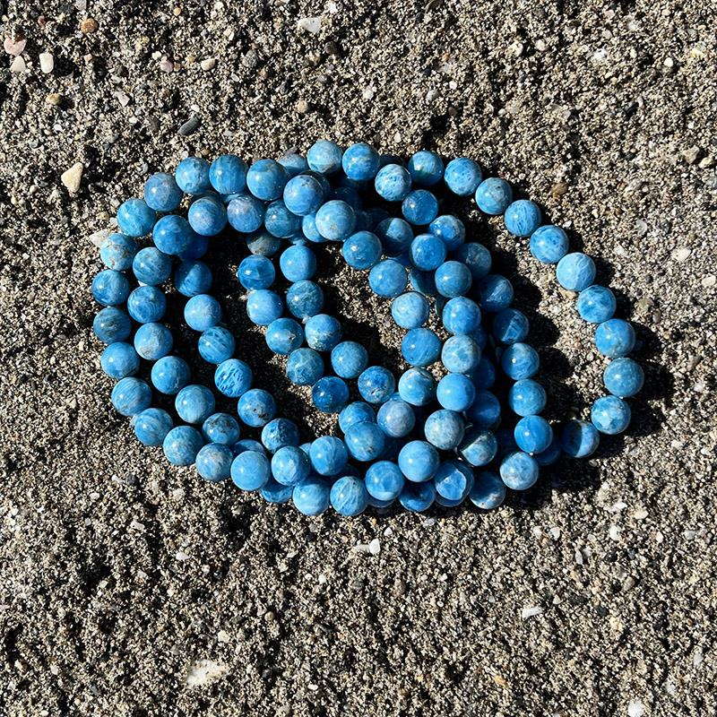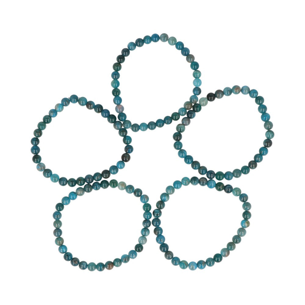 set van 5 armband blauwe apatiet | set van 5 armbanden met 8mm stenen | elastiek, geschikt voor bijna elke polsmaat (omtrek circa 19cm)