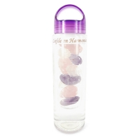 De gouden driehoek in een handige fles: Amethist, Bergkristal en Roze kwarts vullen je water met energie van harmonie, balans, liefde, rust en mededogen. Voor iedereen die tijdens een drukke werkdag kalmte wil binnenzuigen, meer harmonie wil ervaren of van een sjagrijnige bui af wil.