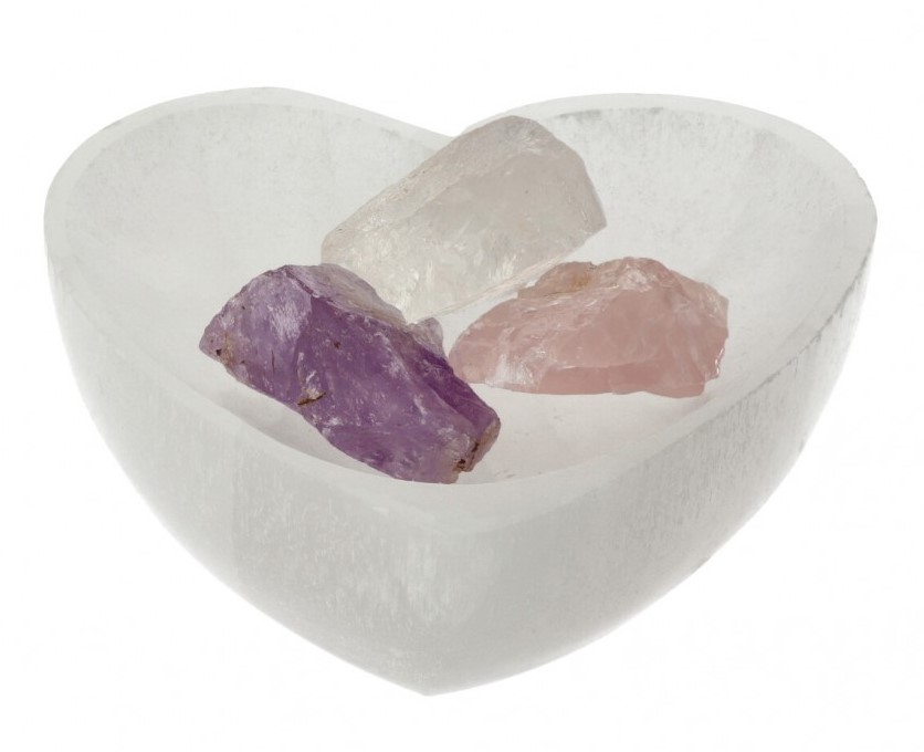 hartvormig schaaltje - seleniet | grootte is iets kleiner dan een hartje wat je met je handen maakt |