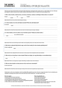 "Deze bladen zullen behulpzaam zijn om met behulp van het boek van Byron Katie mijn overtuigingen los te laten."
